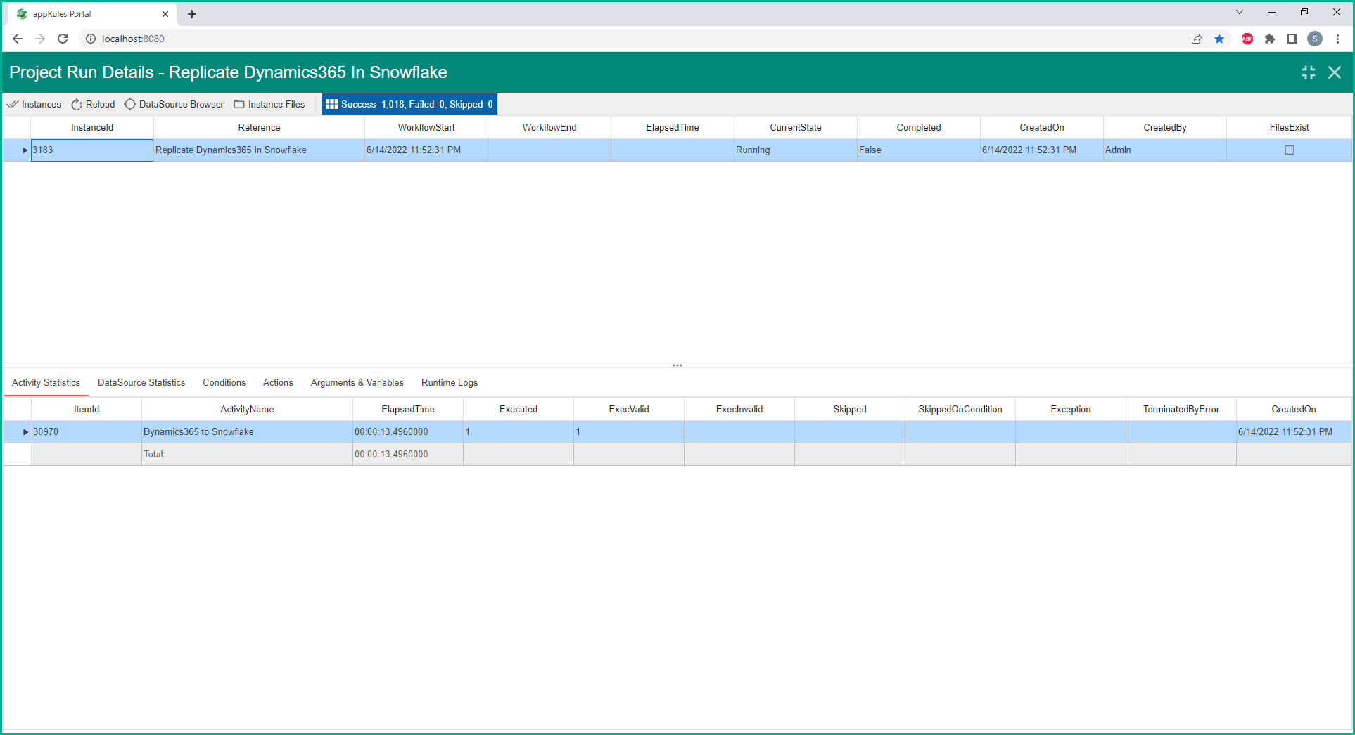 appRules Data Migration Logs and Statistics offer a rich set of options to give you insight into running or completed jobs as show in the sections below.  Simply configure the selection criteria that meets your requirements and click on the Summary, Statistics, Project Run Details or Audit Log Details toolbar button.