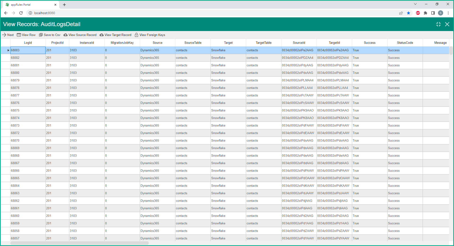 You can browse the the source and newly replicated data records using the appRules Data Source Browser as shown in the figure below.