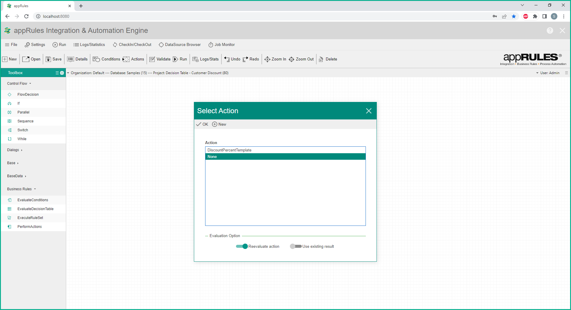To configure the PerformActions activity, drag the PerformActions activity from the "Business Rules" module of the toolbox on to the designer. The following modal will be displayed: