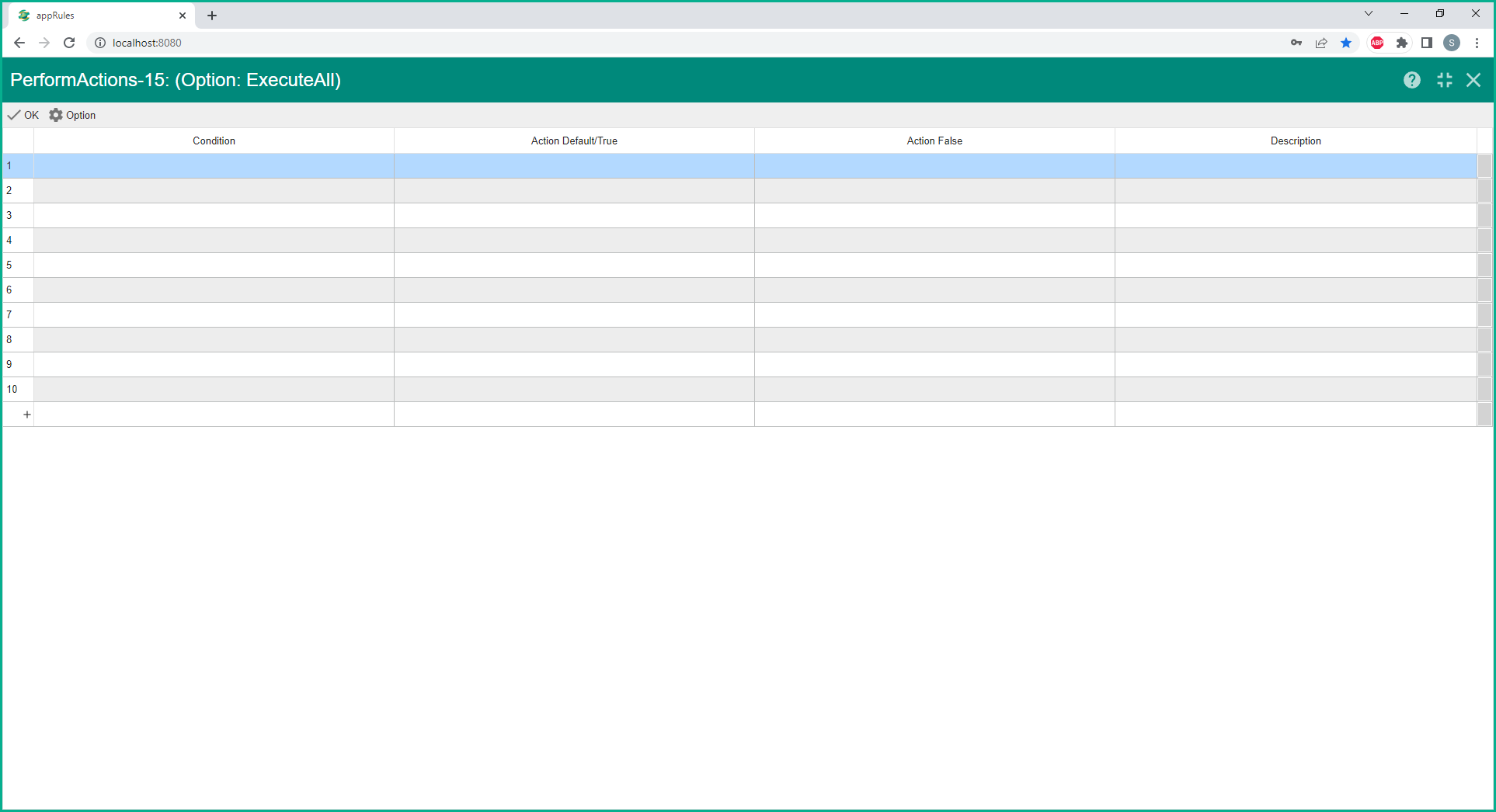 Enter the column values for each Action as follows: