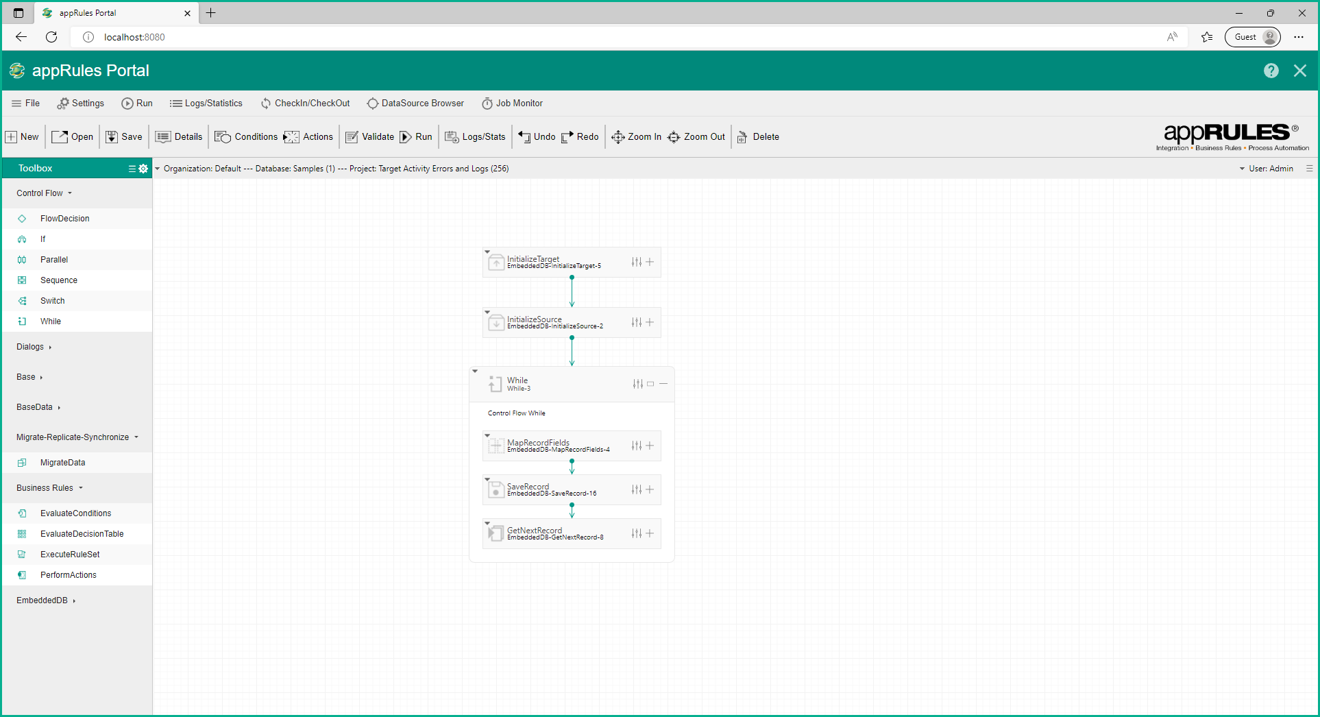 * The activities in this sample project have been deliberately configured to generate data record errors.&#x20;